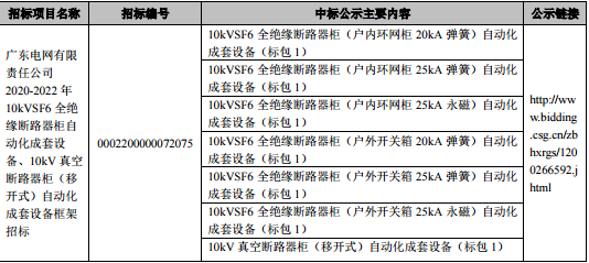 近日,南方電網(wǎng)公司在其電子商務(wù)平臺公示了“廣東電網(wǎng)有限責(zé)任公司2020-2022年10kVSF6全絕緣斷路器柜自動化成套設(shè)備、10kV真空斷路器柜(移開式)自動化成套設(shè)備框架招標(biāo)結(jié)果”,北京科銳為上述項目中標(biāo)候選人。根據(jù)公司中標(biāo)數(shù)量及報價測算,上述項目中標(biāo)金額約為3.78億元,占公司2019年經(jīng)審計營業(yè)收入的15.62%。